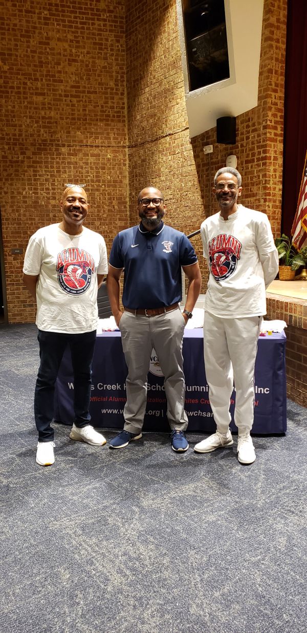 Dr. Glatt and Mr. Gilmore pause for a picture with Dr. Brian Mells, WCHS Executive Principal who expressed his sincere thanks to the Whites Creek High School Alumni Network Incorporated for its generous scholarships and recognition given to certain recipients of the WCHS Class of 2023.